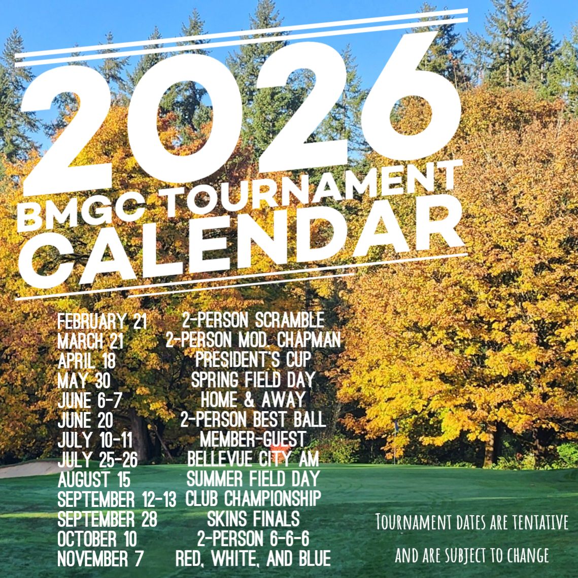 Registration is now available to join the Bellevue Muni Golf Club for 2026! By joining the BMGC, you receive your official GHIN handicap through the USGA and WA Golf, and are eligible to play in all BMGC tournaments in 2026. Your membership to the BMGC and official USGA handicap index are valid through December 31, 2026.